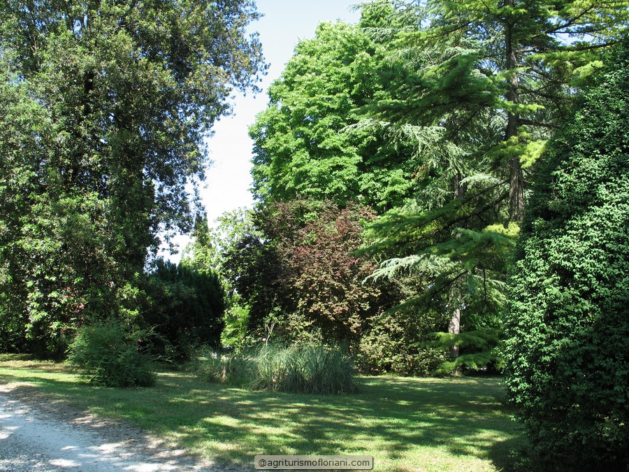 L’edificio è circondato da un ampio giardino con antiche piante ad alto fusto, sempre rinnovato mantenendo l’essenza di origine.
