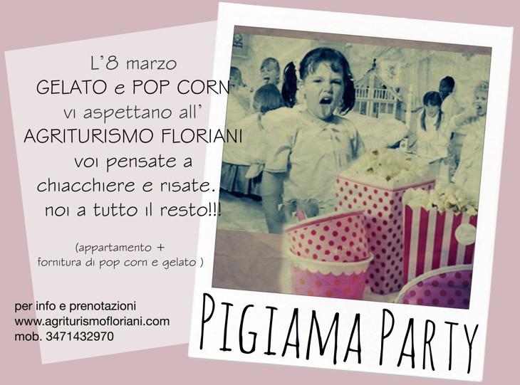 Pigiama party in agriturismo ... per sole donne ... Quale occasione migliore per rivendicare il proprio spazio di donna ... una notte con le amiche a chiacchierare, ridere, mangiare popcorn e gelato ... Se siete un gruppetto di ragazze (donne, mamme, single,...