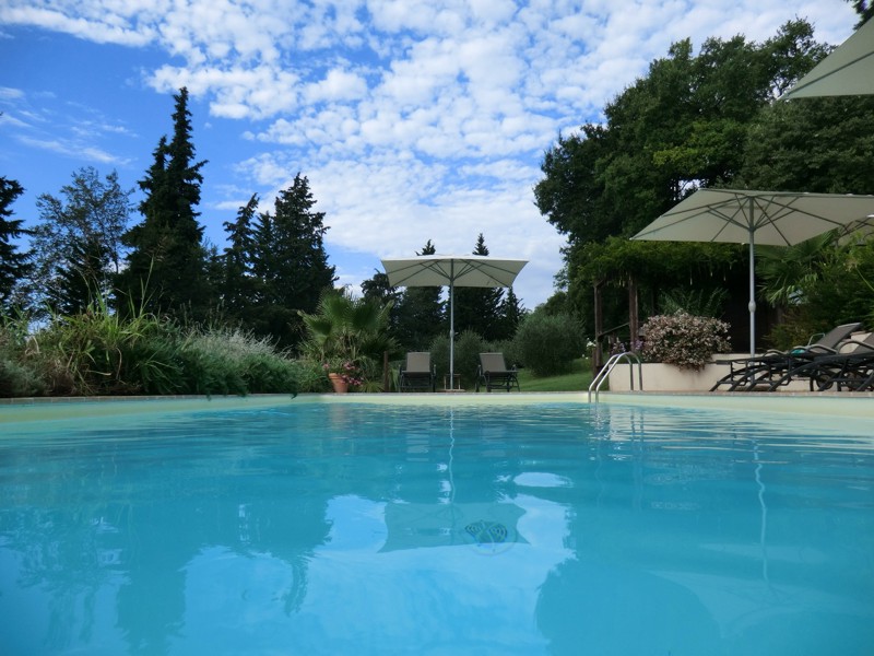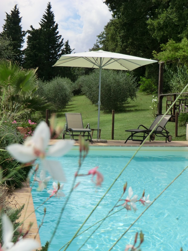 Integrata con il paesaggio circostante la piscina offre un luogo di convivialità e distensione.
